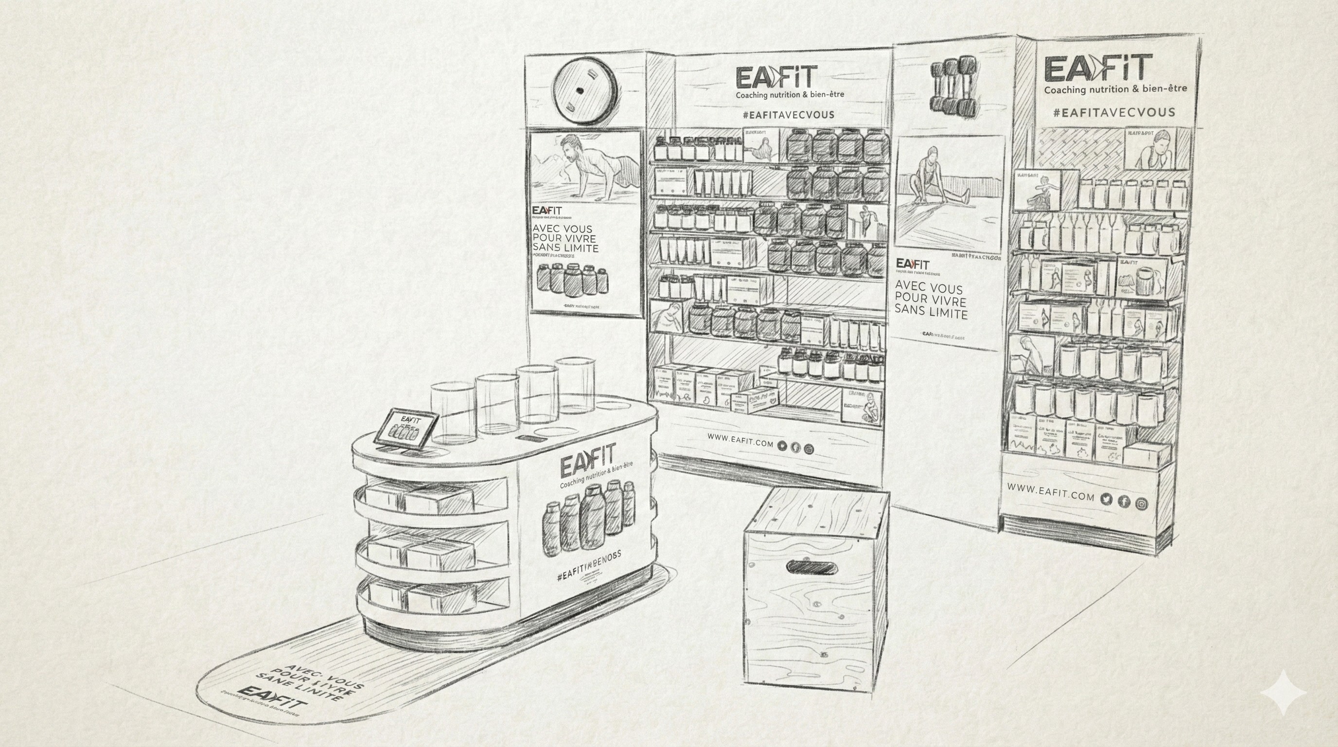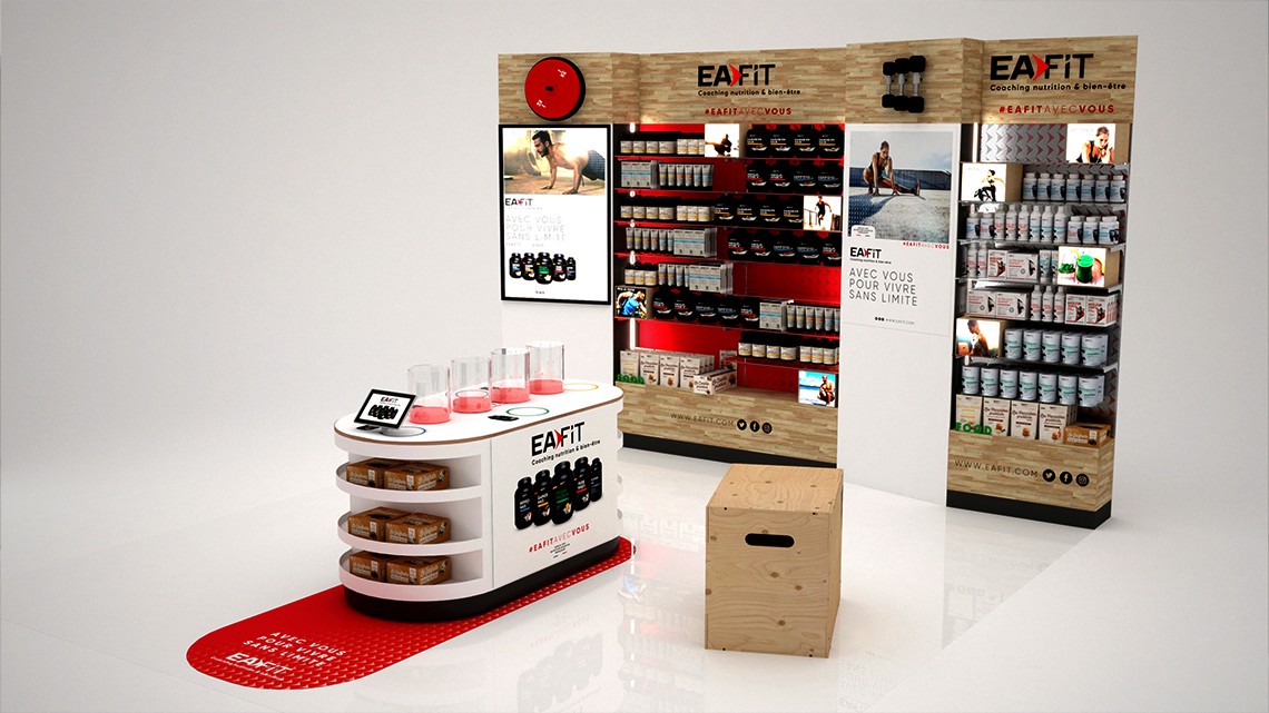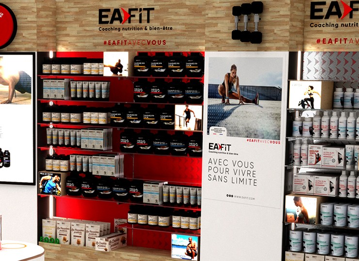 Création d'espaces de vente stratégiques valorisant l'expertise naturelle d'Arkopharma et la performance d'EAfit.