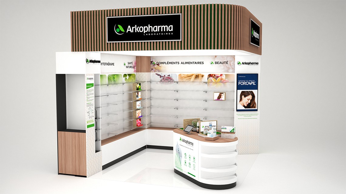 Conception shop-in-shop pour Arkopharma et EAfit au sein de la pharmacie CAP 3000.