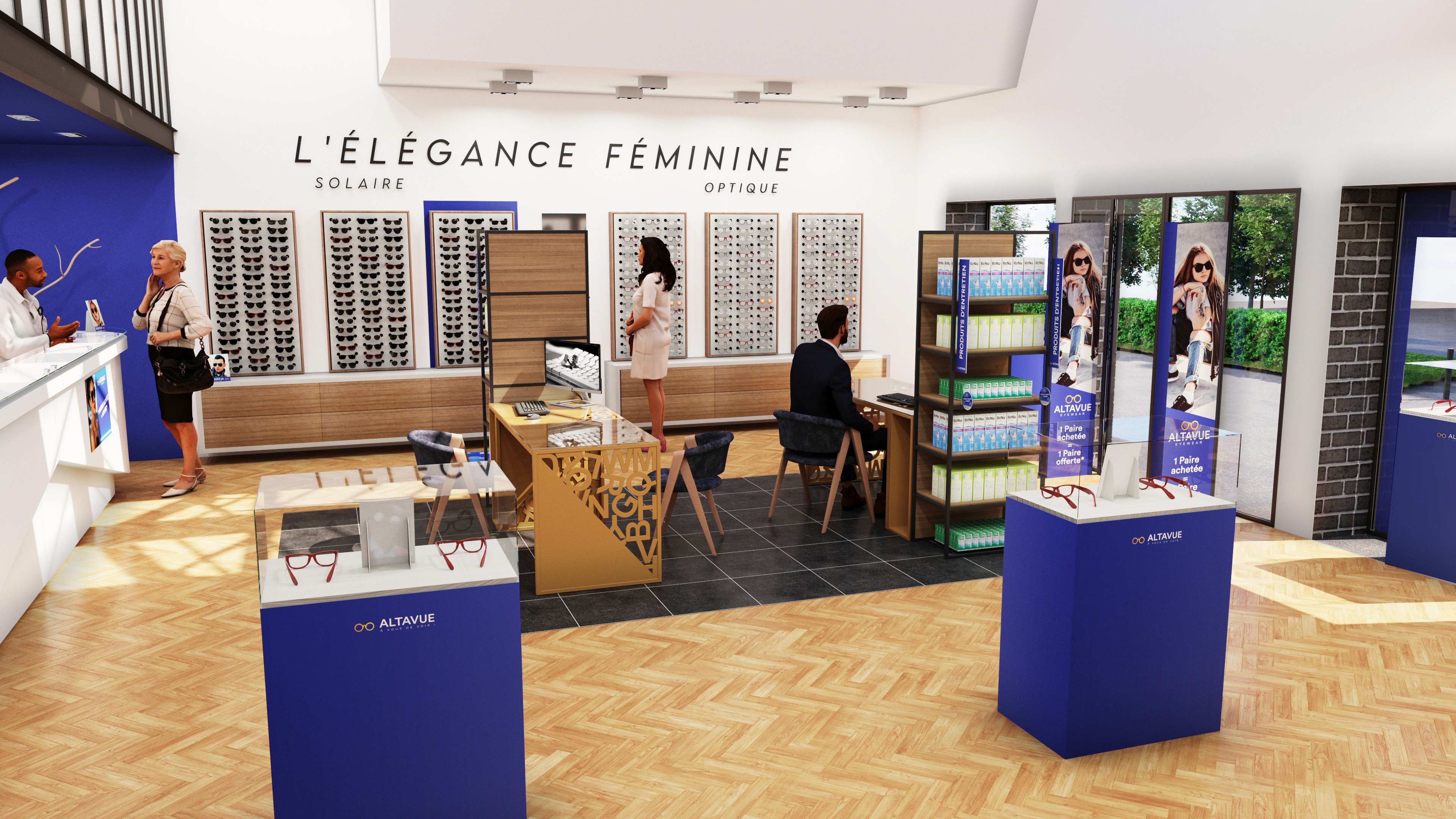 Un support de vente dynamique offrant une immersion totale dans un corner optique premium.